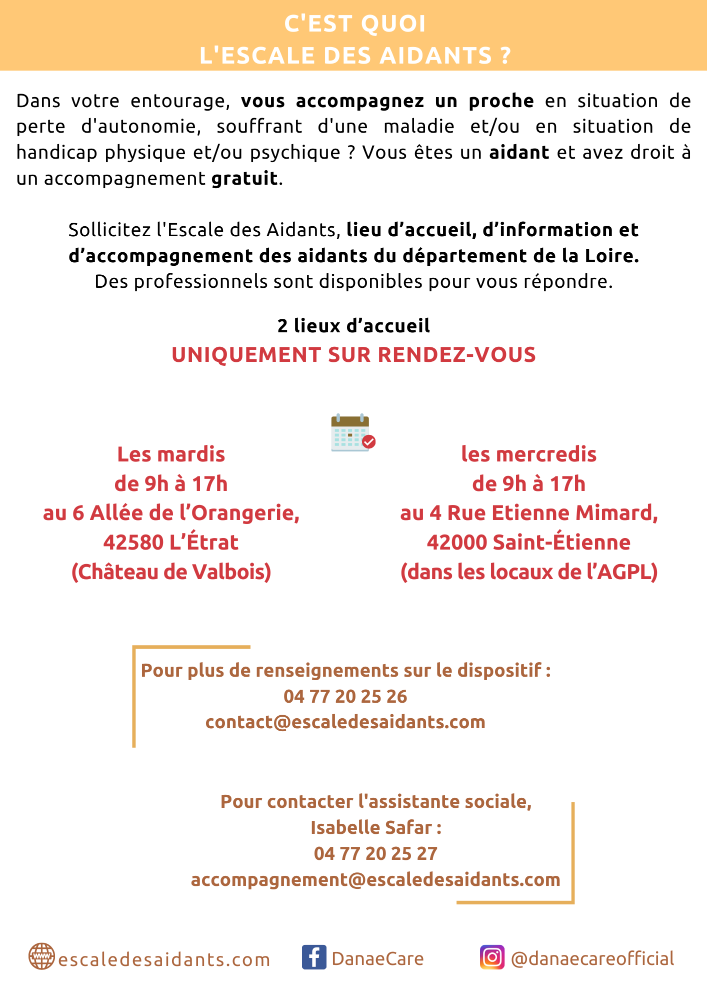 Si vous avez des questions, n'hésitez pas à nous contacter au 04 77 20 25 26 ou à contact@escaledesaidants.com.